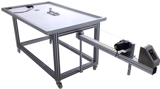 XL-PV168-02ST光伏抗划痕切割试验机 1.仪器满足试验标准IEC 61730-2 /UL 1703-2008中剪切抗划伤试验要求。 The instrument meets the test requirements of the test standard IEC 61730-2 /UL 1703-2008. 2.锯条材质:硬质碳钢 Saw blade material: hard carbon steel 3.刀口半径:0.115±0.025mm Blade radius: 0.115 plus or minus 0.025mm 4.锯条厚度:0.64±0.05mm Thickness of saw blade: 0.64 + 0.05mm 5.锯条安装角度:水平角度40° Saw blade installation Angle: horizontal Angle of 40 ° 6.砝码:保证测试点受到的压力为8.9N±0.5N Weight: the pressure on the test point is 8.9 N/N / 0.5N 7.牵引速度:同时满足150±30mm/s、152.4±30.5mm/s, Traction speed: at the same time, it satisfies 150 plus or minus 30mm/s, 152.4 plus or minus 30.5mm/s,