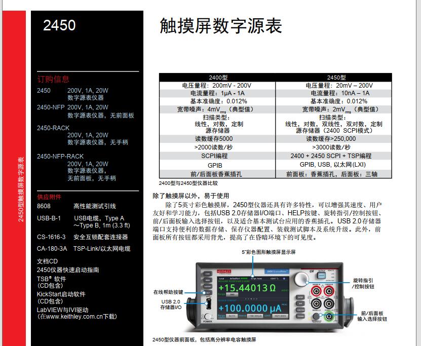 2450型触摸屏数字源表是吉时利新一代数字源表(SMU)