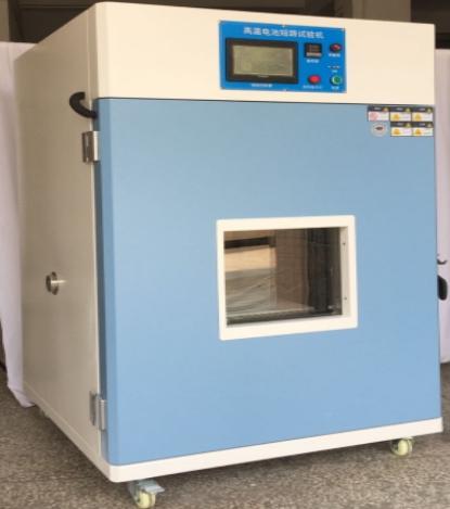 1、型号:BWD-CE-BA1080 2、满足标准: 依据标准GB 31241-2014《 便携式电子产品用锂离子电池和电池组 安全要求》标准要求:高温外部短路将电池按照规定的试验方法充满电后,放置在55℃ ± 5℃ 的环境中,待电池温度达到55℃± 5℃ 后, 再放置30min。 然后用导线连接电池正负极端, 并确保全部外部电阻同时满足80± 20mΩ , 试验过程中可监测电池表面温度变化, 短路停机条件: 短路时间, 表面温度下降比20%; 接收标准: 电池应不起火、 不爆炸, 最高温度不超过 150℃ 。 3、检测目的:检测电池耐强制放电的能力。 4、技术参数: 最大负载电流 :1000A; 直流响应时间≤5μ s; 内置电阻:80± 20 毫欧; 内外箱材质:不锈钢 SUS201/1.2mm 厚;外箱冷轧板 1.5mm 厚; 控制方式:PLC 触摸屏控制; 温度控制:常温 RT+10℃ ~80℃,温升速率 3℃ /min 温度均匀度:± 2℃ 电流采集范围:0-1000A DC; 电流采集精度:± 0.5%F.S; 电压采集范围:0~ 10V; 电压采集精度:±0.2%FS; 温度采集范围:0~800℃; 温度采集精度:± 1℃;